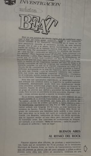 “Pasaron algunos años difíciles, de pruebas y experimentaciones, hasta que en noviembre se produjo, en el Velódromo, Municipal de Buenos Aires, un hecho de trascendencia nacional: seis mil jóvenes se dieron cita allí para aplaudir o silbar a otros jóvenes como ellos que, sobre un escenario, inmersos en una maraña de cables de guitarras eléctricas, amplificadores, parlantes, órganos y baterías, intentaban elaborar un lenguaje común entre intérprete y espectador a través de la música”, describió un artículo de la Revista Viva publicado en junio de 1971, poco después de la primera edición del emblemático Buenos Aires Rock, también conocido como BA Rock.
