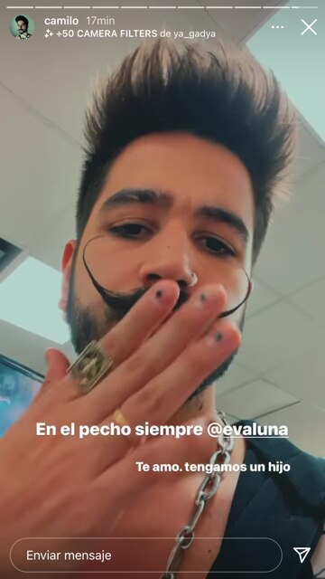 Camilo dejó sin aliento a sus fanáticos al compartir un video donde muestra que lleva colgada la “E”, inicial de su esposa, y un texto que ilusionó a todos. “En el pecho siempre Evaluna. Te amo. Tengamos un hijo”, lanzaba junto a la historia de Instagram que revolucionó al fandom de los cantantes. Si bien esta no es la primera vez que Camilo se manifiesta públicamente sobre el tema, su frase hoy cobra mayor protagonismo ya que la dupla se casó hace varios meses y siempre manifestaron sus deseos de formar una familia.